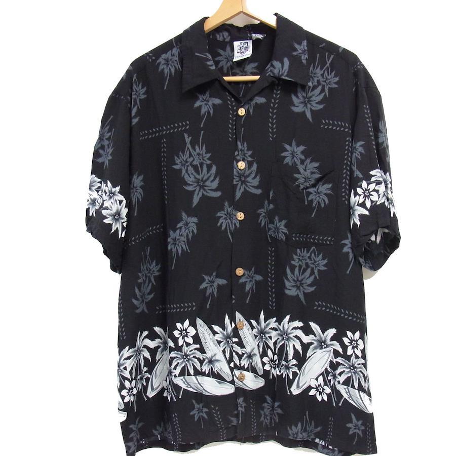 90s KENNINGTON Aloha shirt, short sleeve shirt, men's rayon shirt, palm tree, surfboard, coconut buttons, XL