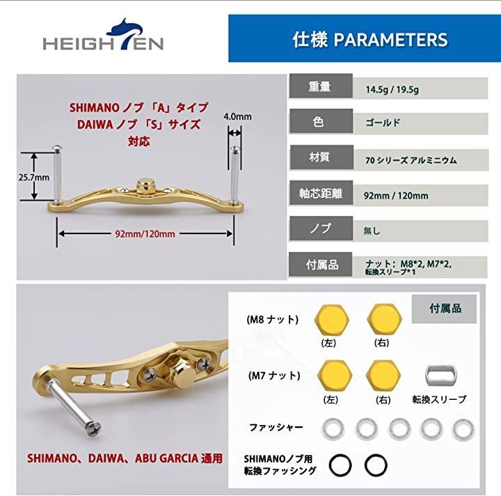・「サイズ」(ノブ無し)、ハンドル軸心距離120mm / 92mm 「総重」19.5g / 14.5g「素材」70シリーズ航空アルミ。