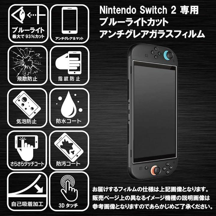 「対応機種」Nintendo Switch 2 / スイッチ2 用「仕様」ブルーライトカット93% 非光沢 アンチグレア マット仕上げ 表面硬度10H(*パッケージは旧9H硬度表記となりますが現行のフィルムの硬度は新しい硬度10Hの仕様となります。