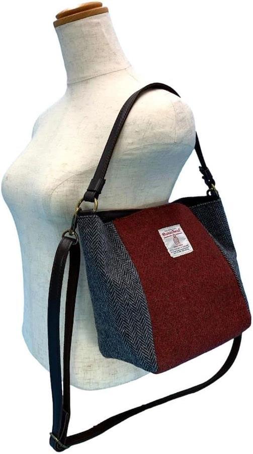 *英国の人気生地 ハリスツイードを前面に、再生ウールを背面に使用した手提げバッグ。