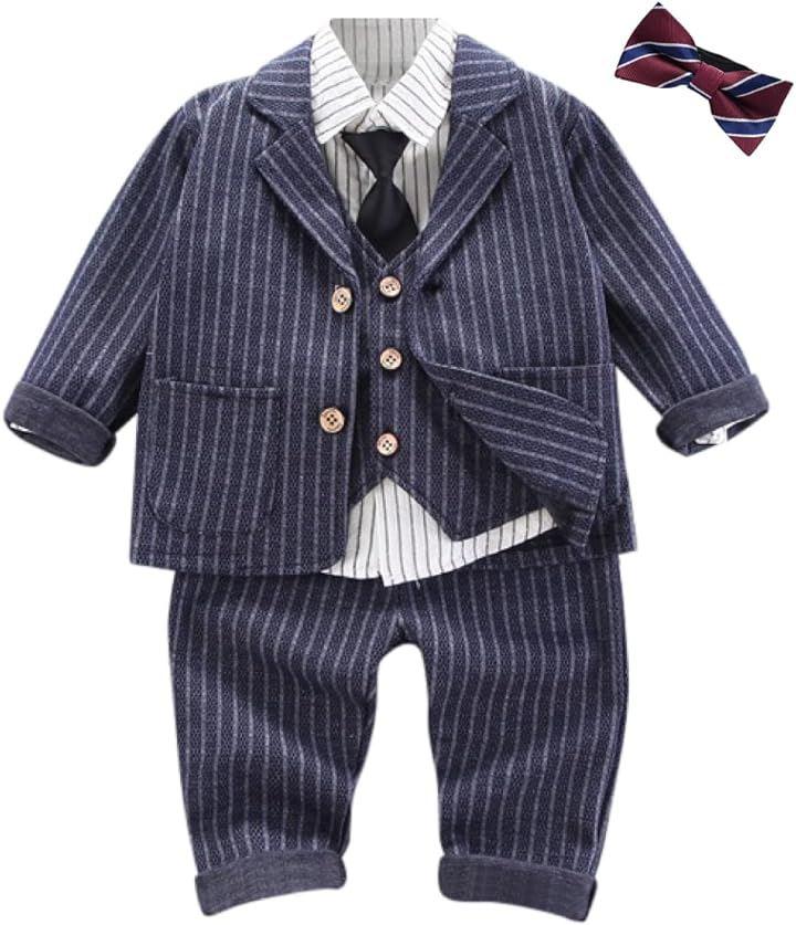 「フルセットで手間いらず」スーツ上下・ベスト・白シャツ・ネクタイ・蝶ネクタイの6点セットでコーデ完成。