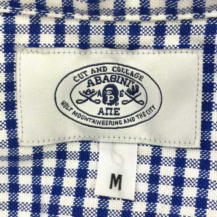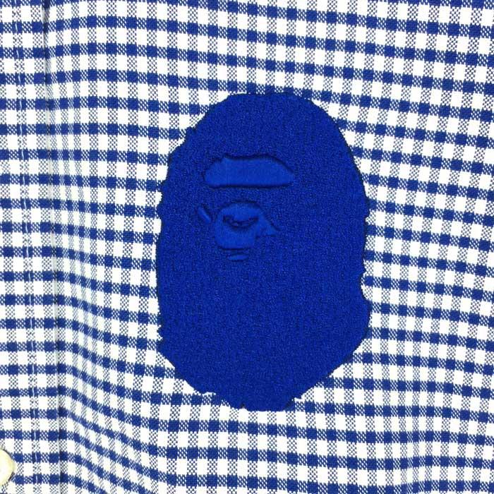 【管理番号】 011251【ブランド名】 A BATHING APEエイプ【アイテム】 半袖シャツ ボタンダウン ワッペン付き M【サイズ】 M 平置採寸(肩幅:約41.5cm・身幅:約50cm・袖丈:約22cm・着丈:約68cm)【色・柄】 ブルー チェック柄【素材】 コットン100%【外観ランク】SAランク