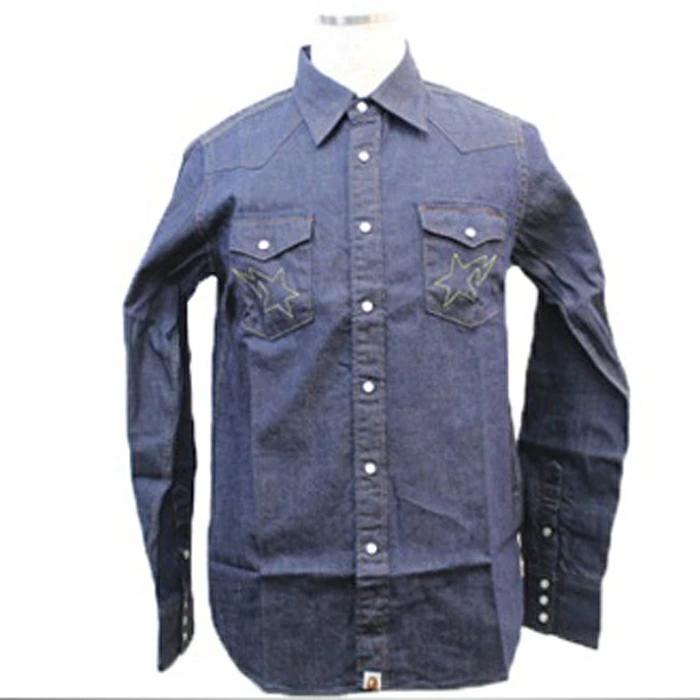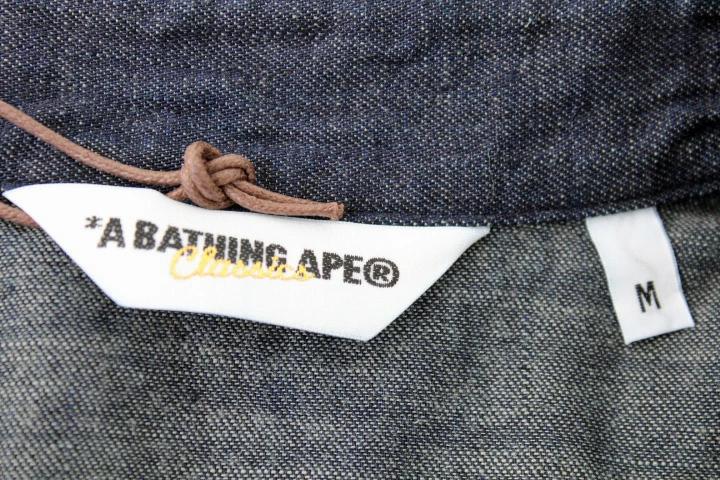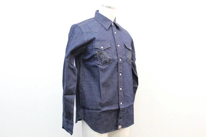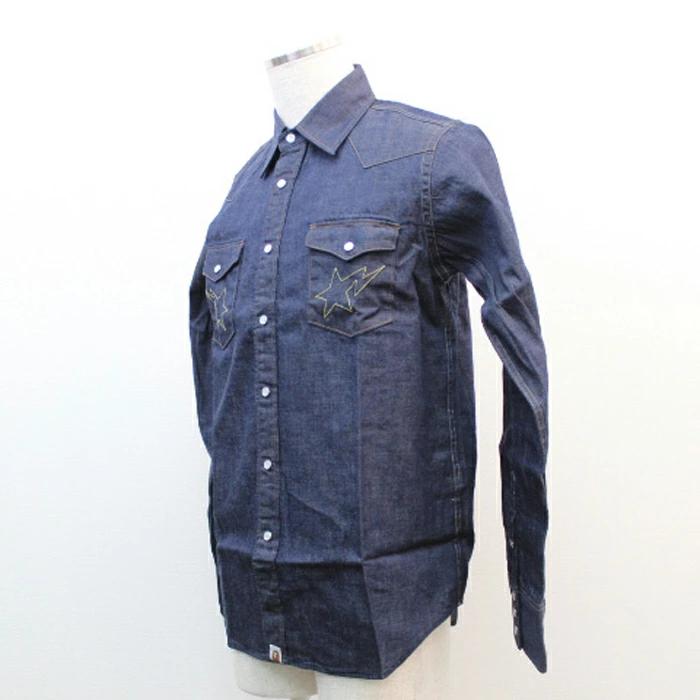 【管理番号】002119w【商品名】 A BATHING APE/アベイシングエイプ【アイテム】 長袖ウエスタンシャツ【サイズ】 M(肩幅/約41.5cm・身幅/約53.5cm・袖丈/約65cm・着丈/約73cm)【色・素材】 デニム・綿100%【付属品】 タグ/袋【外観ランク】 NSランク