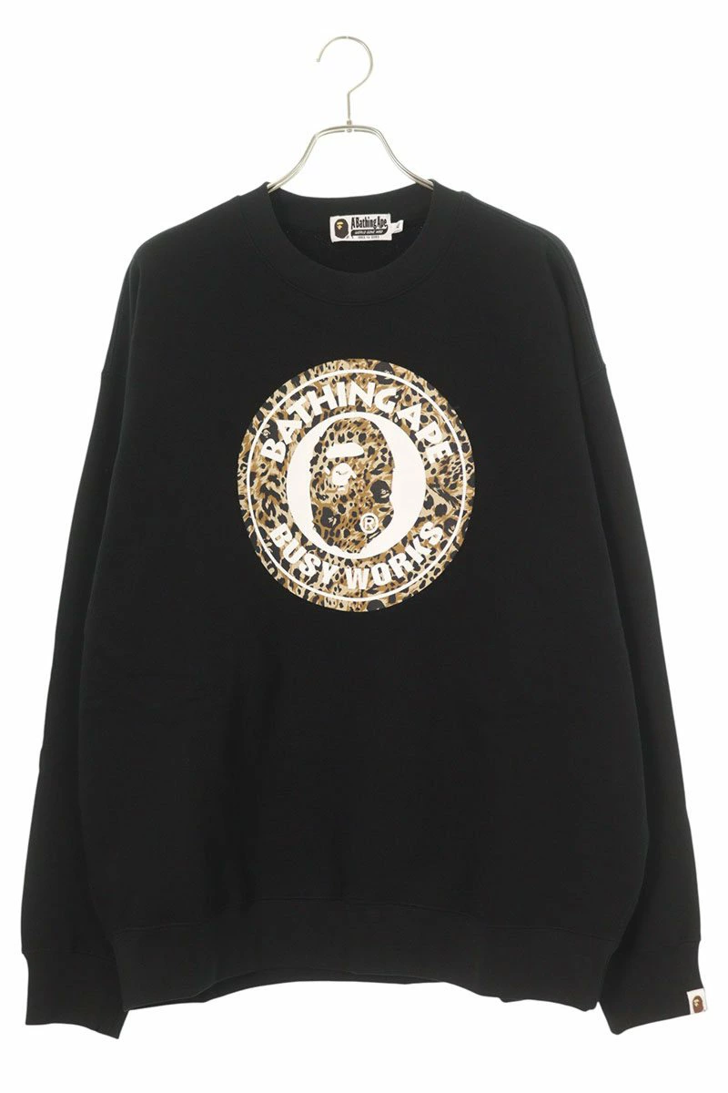 A BATHING APE Wild Leopard Pattern Relaxed Fit Crewneck Sweatshirt, Size: XL, Leopard Logo Print Crewneck Sweatshirt (Black) [900152] [BS55] [Men's] [Pre-owned] bb51#rinkan*A