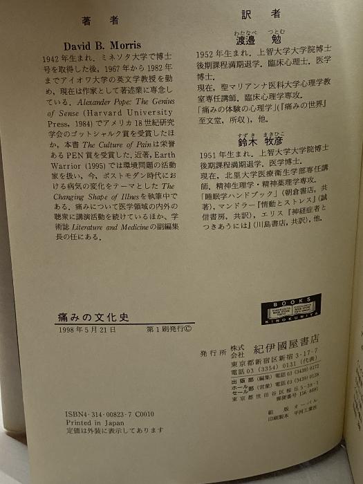 商品名:痛みの文化史 紀伊國屋書店 デイヴィド・B. モリス