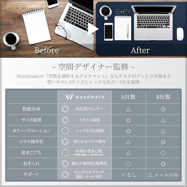 グリップ力:裏面は柔らかいコルク調でデスクを保護します。