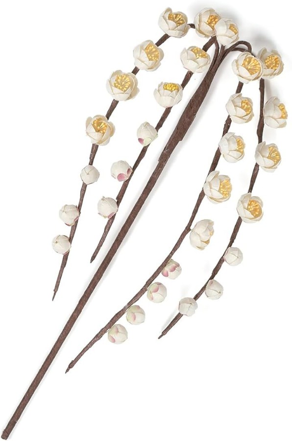 A floral reed diffuser stick made with handmade Japanese paper, featuring a single artificial flower or faux green plant.