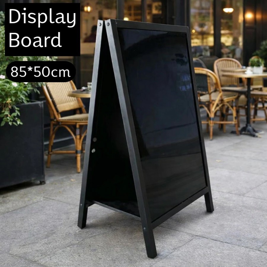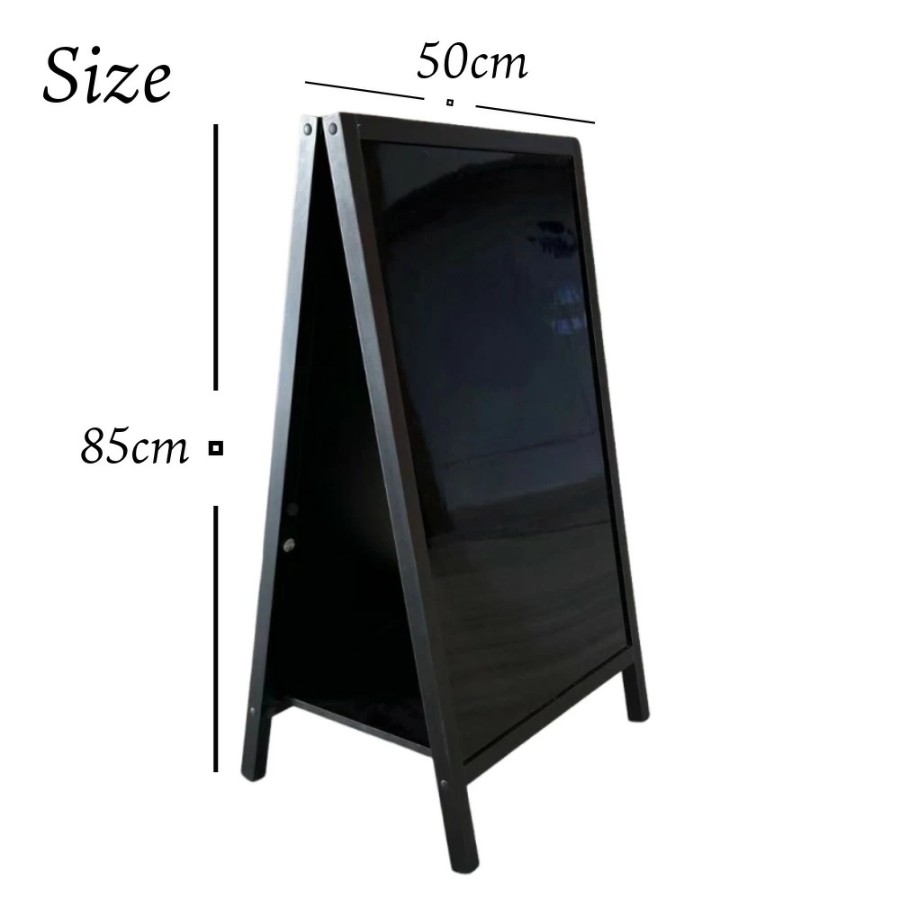 置くだけで視線を集めやすく、喫茶店・レストラン・雑貨屋さんの店頭はもちろん、フリーマーケットや催事などでも大活躍。シンプルなブラックデザインで、どんな雰囲気のお店にも合わせやすいのが魅力です。