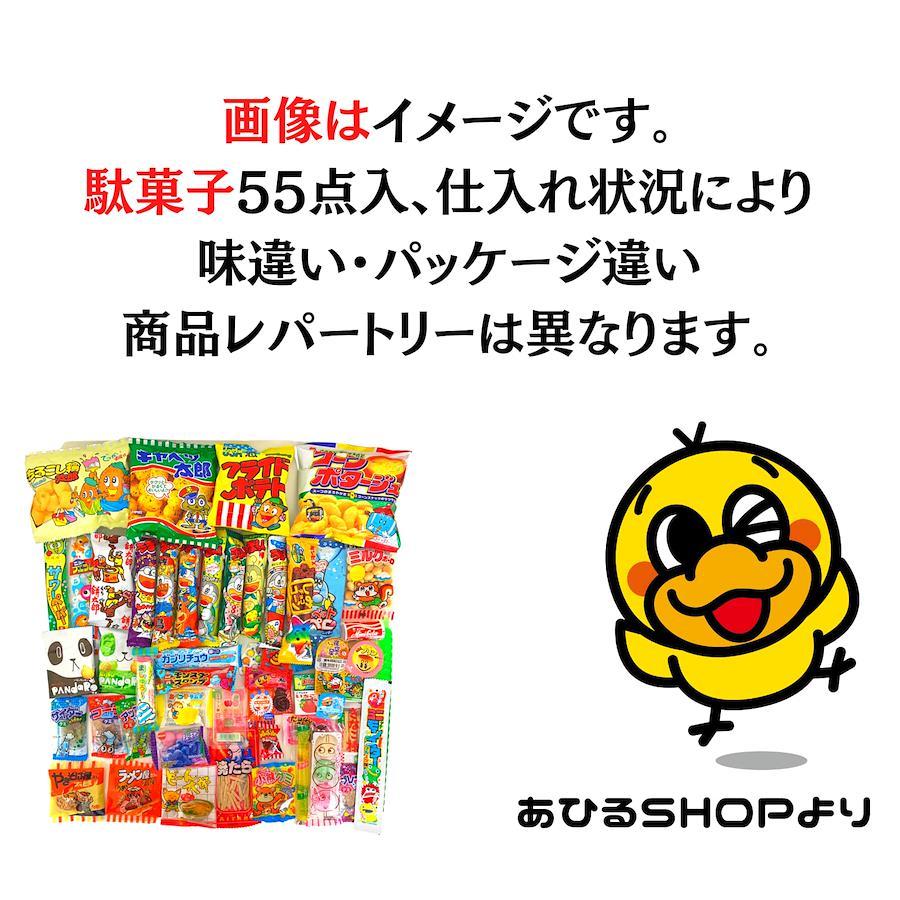 駄菓子屋あひるSHOPパッケージ重量:0.76kgフレーバー: チョコ;ラムネ;豚肉サイズ: 55個アソート【重要】メーカーによる商品リニューアルに伴いパッケージ(内容量も含む)変更が行われた場合、新パッケージでお届け致します事ご了承願います。