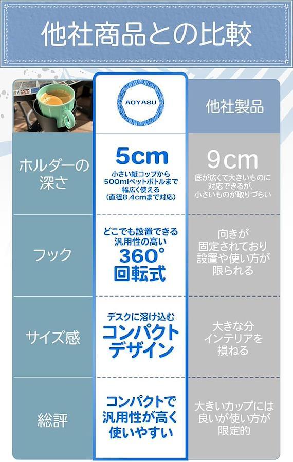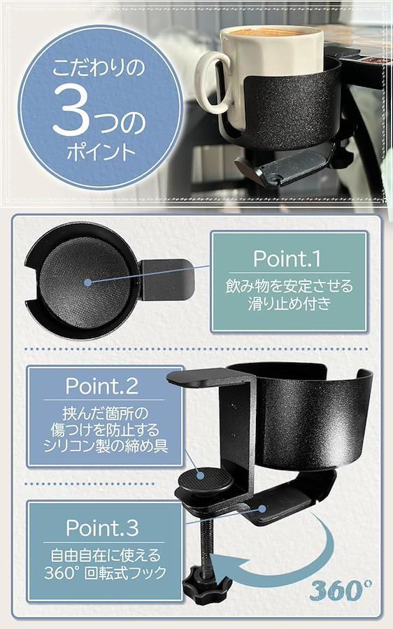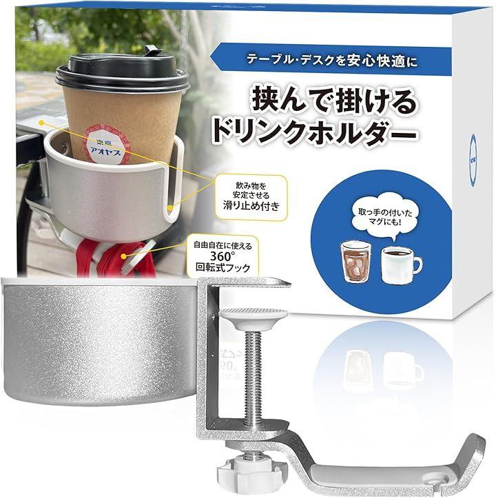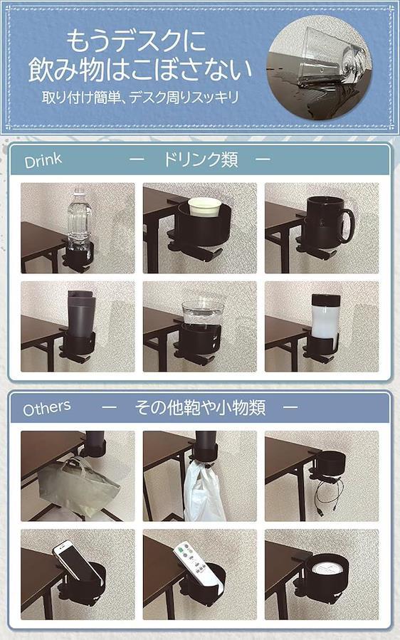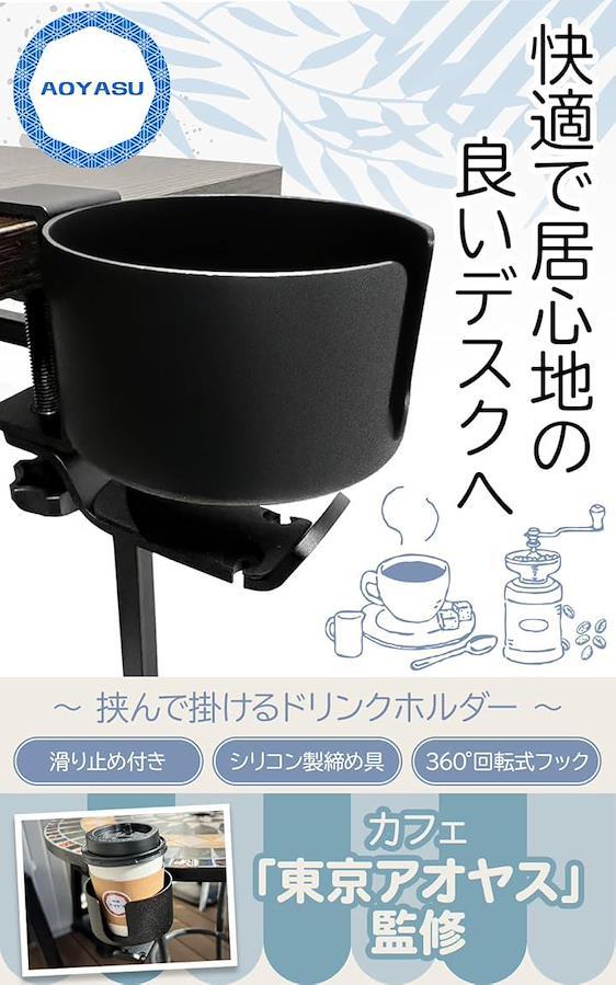 Compatible product, hanging drink holder, desk, spill prevention, storage utilization, supervised by Aoyasu at Cafe Tokyo