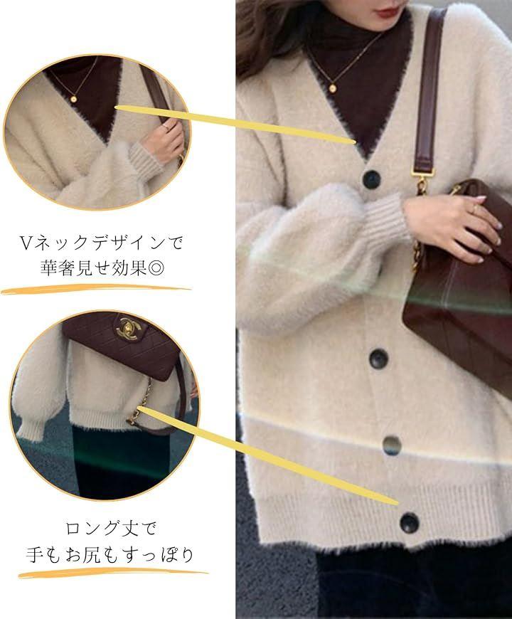 暖かいカーディガンとして冬のおしゃれを快適に楽しめます。