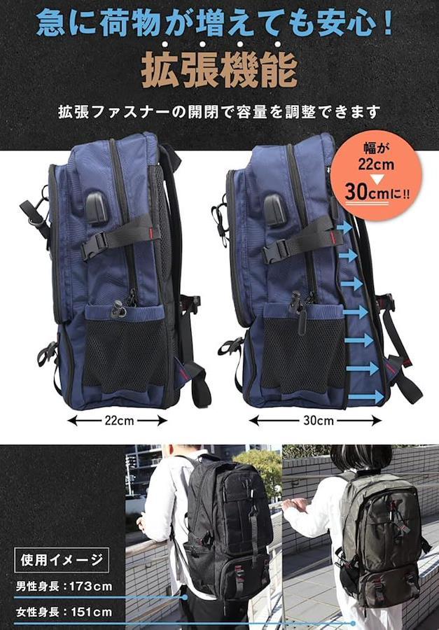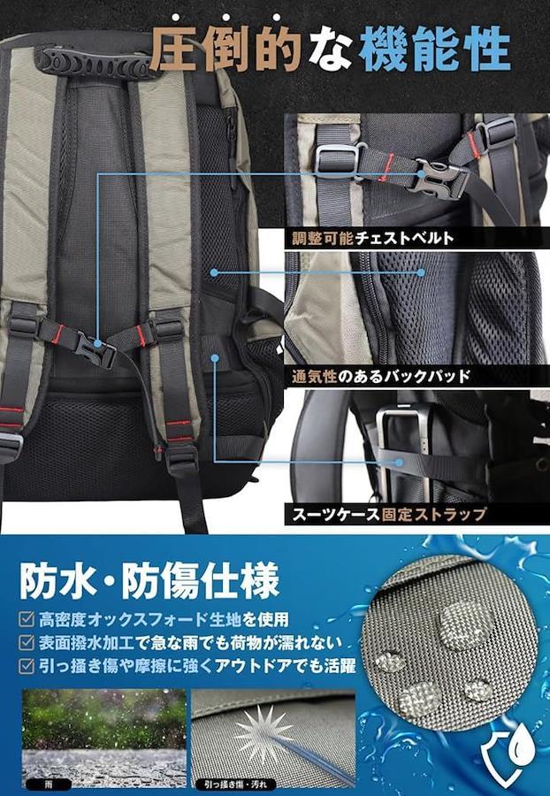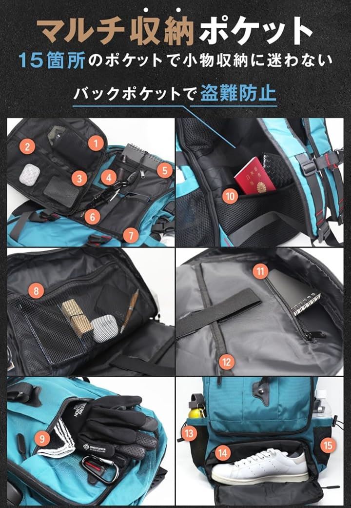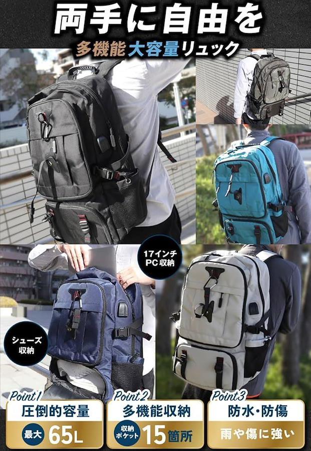 65Lの大容量で使いやすくビジネス、通勤、通学、旅行、登山、キャンプ、バスケ、サッカーなど様々な場面で使える機能性の高いリュックです。