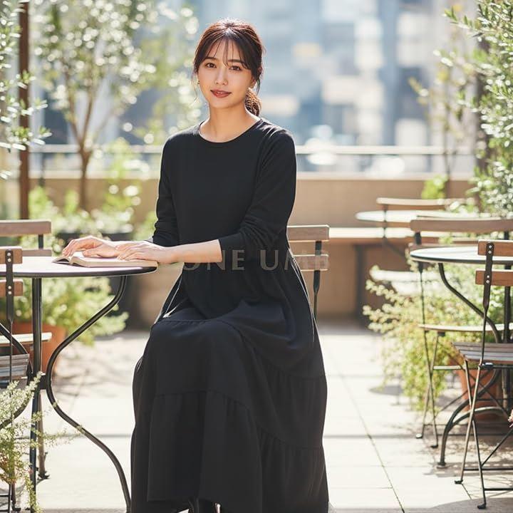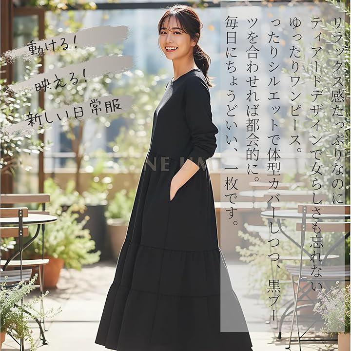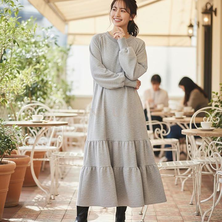 シンプルで着回しやすいロング丈のスウェット素材のティアードワンピースです。