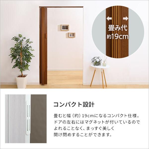 【素材】本体・レール:PVC取っ手:ABS樹脂ランナー:ポリアセタールマグネット受け:スチール【商品サイズ】W95×H174cm【商品重量】約4kg【梱包サイズ】W11×D8.5×H180cm【梱包重量】約5kg【生産国】中国【カラー】ライトブラウン、ダークブラウン、ホワイトオーク【その他】ドア幅は製品特性上、若干大きめに作られている為、締めた時にフラット(平らな状態)になりません。レールの幅を短くするには、ノコギリをご用意して頂く必要がございます。>>木目調パネルドア