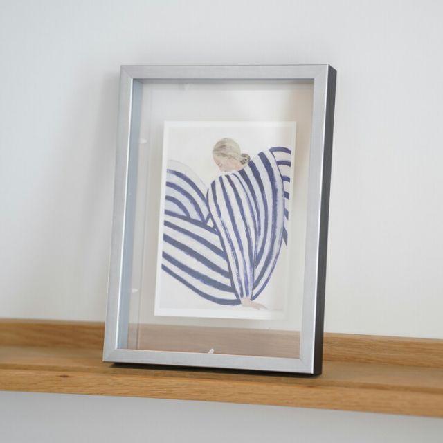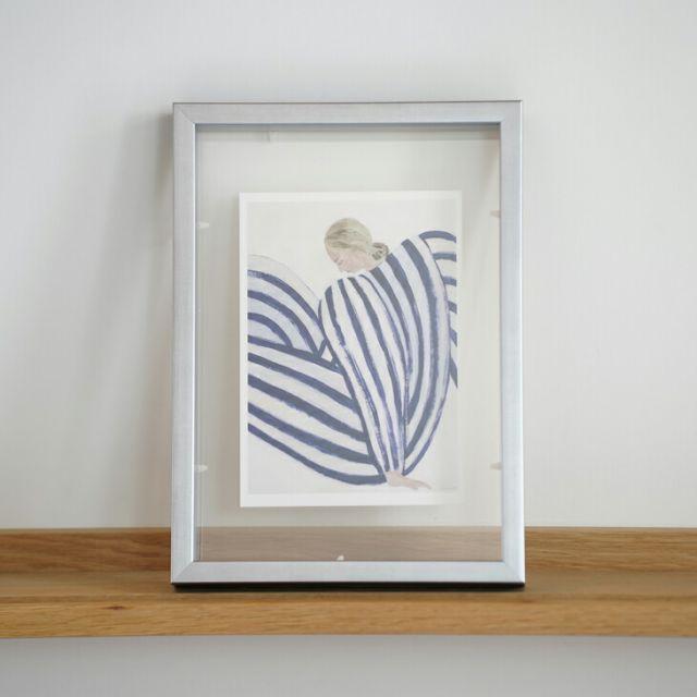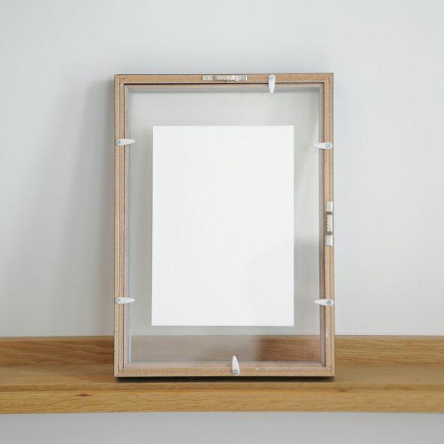2枚の透明板で作品を挟む、前後透明の立体感のあるボックスフレーム。