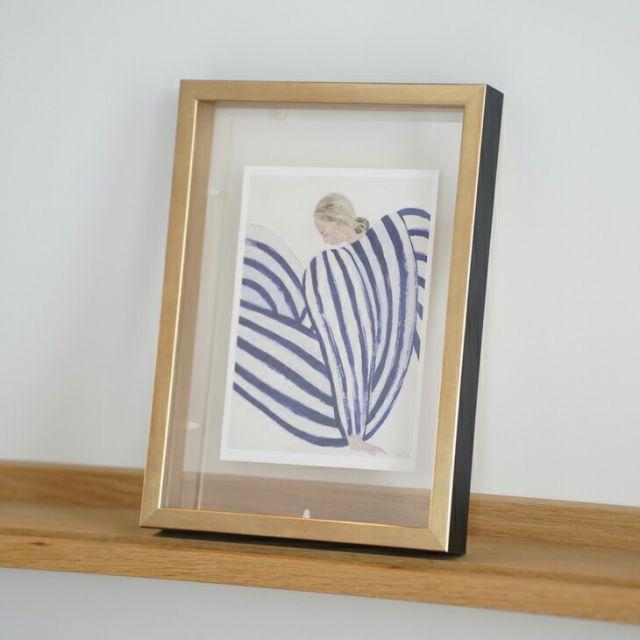 額縁サイズに対し、小さいサイズのポストカードやポスターを飾ることによって、立体的な雰囲気を出してくれます。