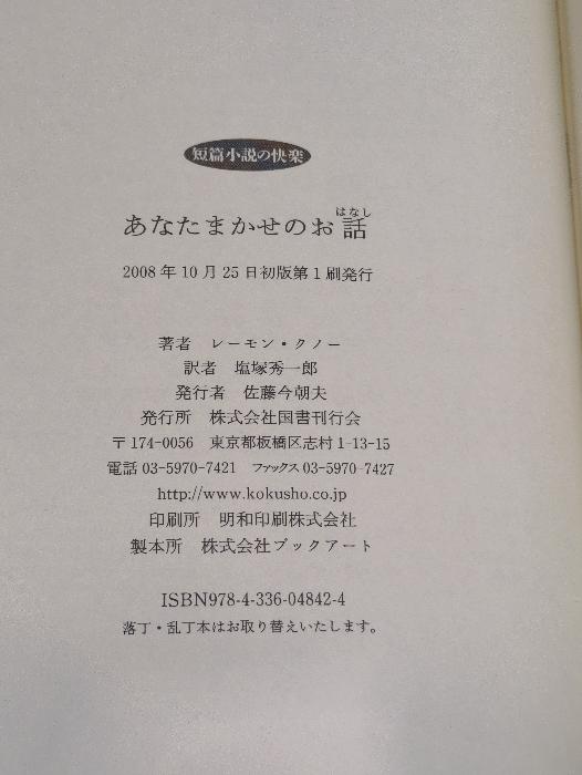 b02-251229003010015-000あなたまかせのお話 (短篇小説の快楽) 国書刊行会 レーモン クノー