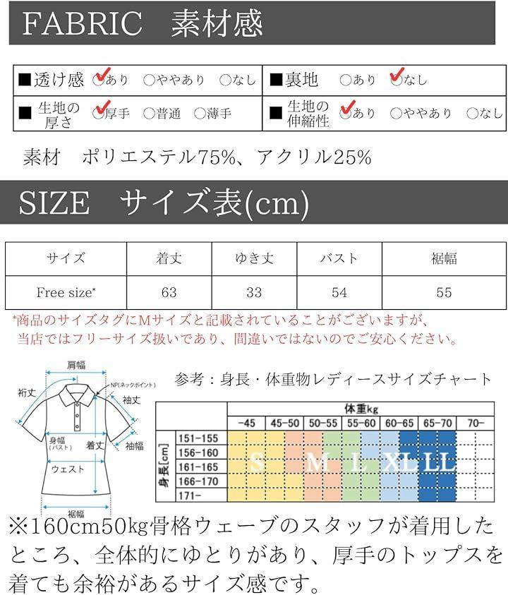 「素材」ポリエステル75%、アクリル25% 「カラー」グリーン、ブルー、オフホワイト、ブラック、レッド「サイズ(cm)」Free size (M sizeとタグ表記有) 着丈63/ゆき丈33/バスト54/裾幅55