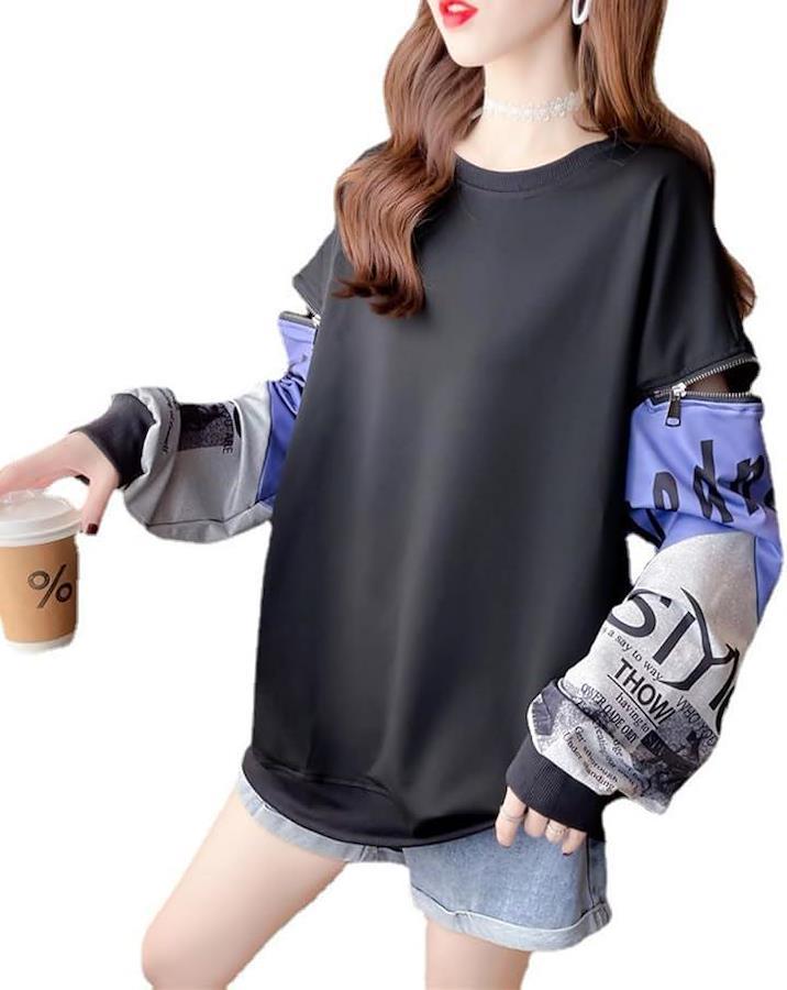 大きいサイズやオーバーサイズを好む方にもぴったりなプルオーバー仕様で、韓国風の可愛さと快適さを兼ね備えたトップです。