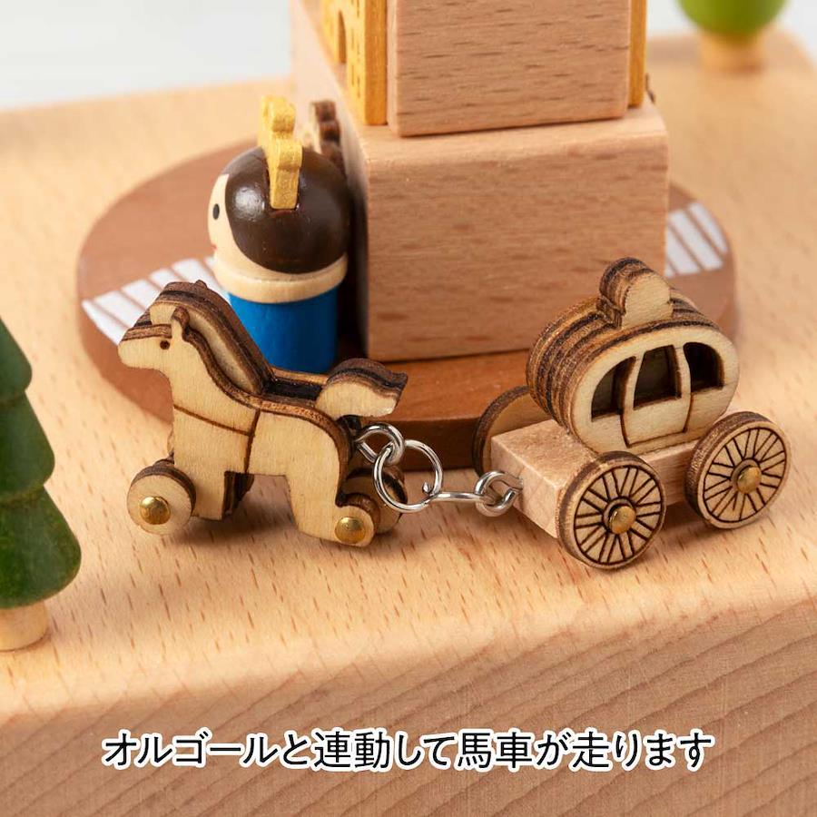 オルゴール以外はすべて木製で作られた回転オルゴール。手触りがよく温もり感じる木の装飾はただ飾られてるだけでなく、オルゴールを鳴らす事で一緒に回転する仕様。