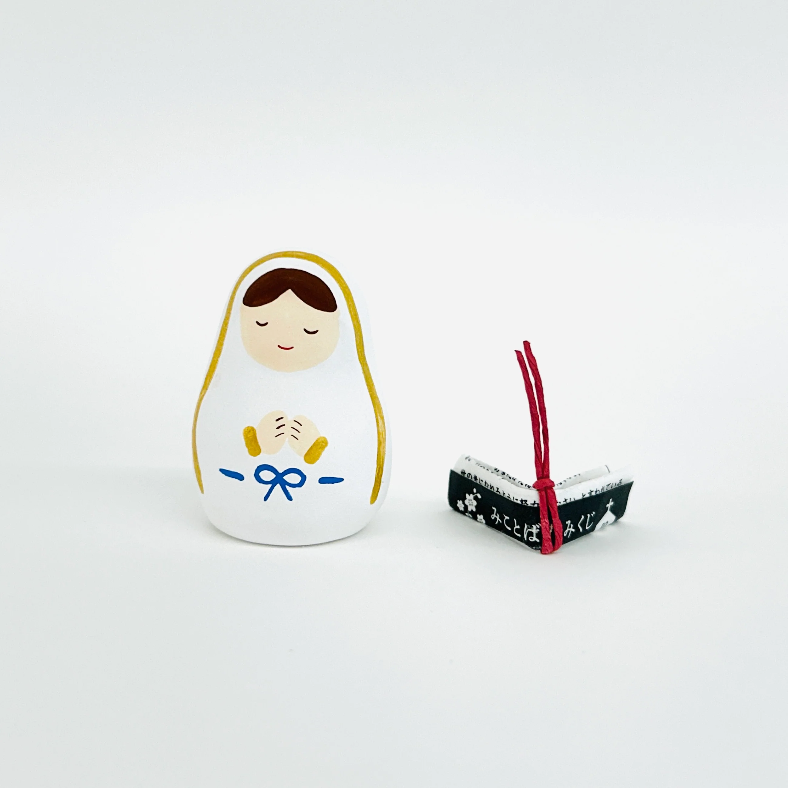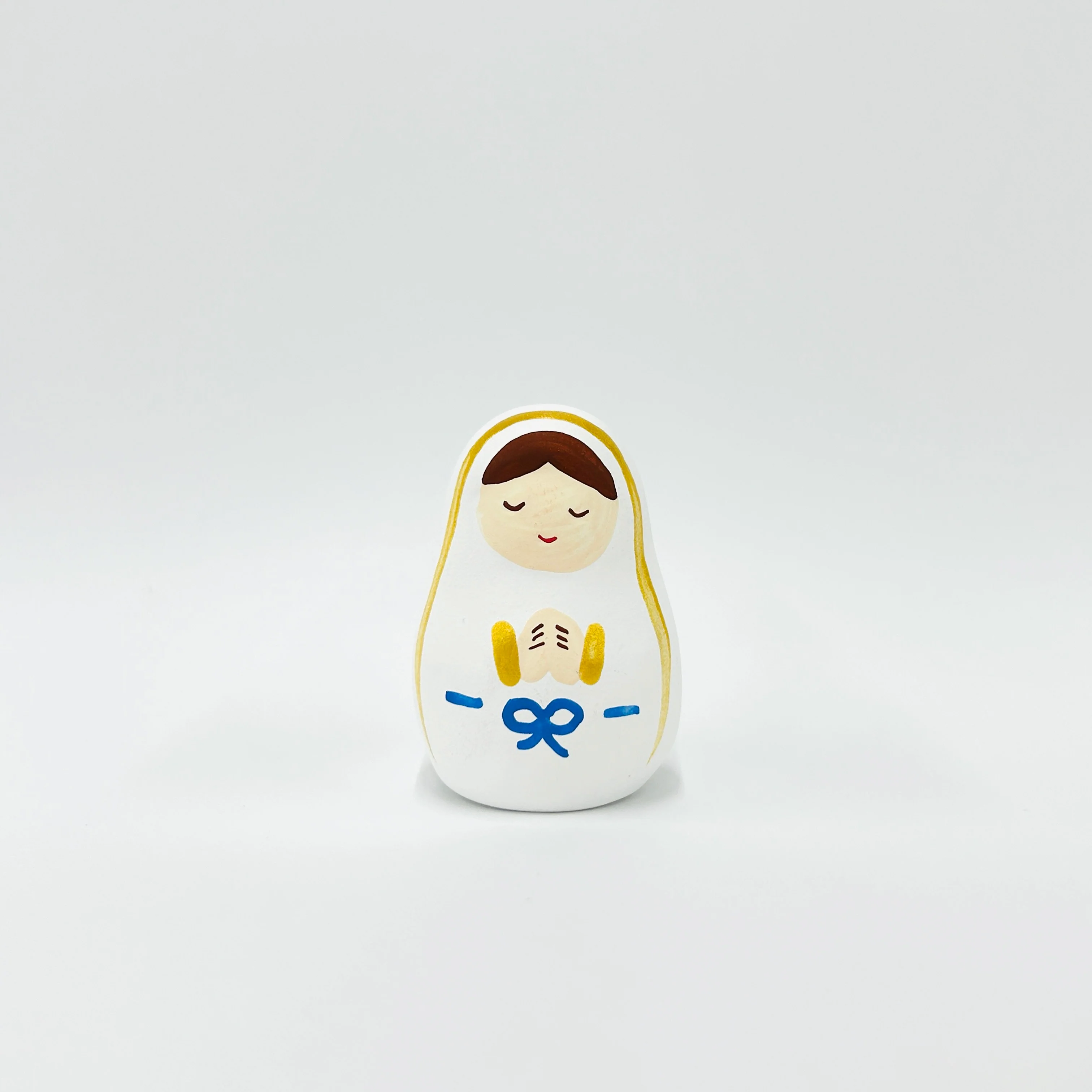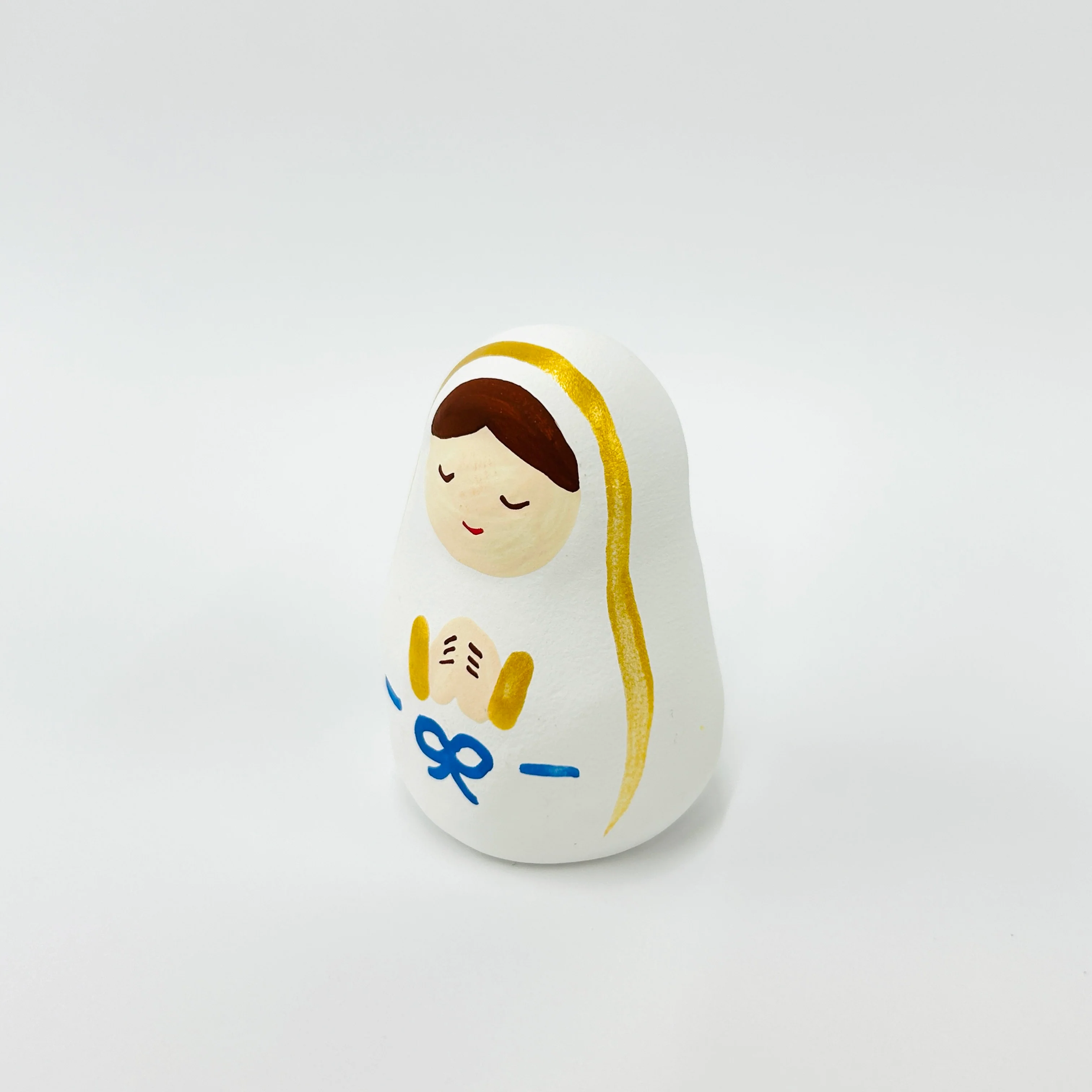 ころんとしたフォルムが愛らしい、手のひらサイズの陶器製の聖母像。