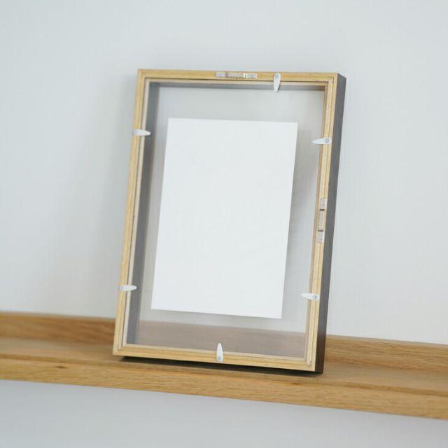 2枚の透明板で作品を挟む、前後透明の立体感のあるボックスフレーム。