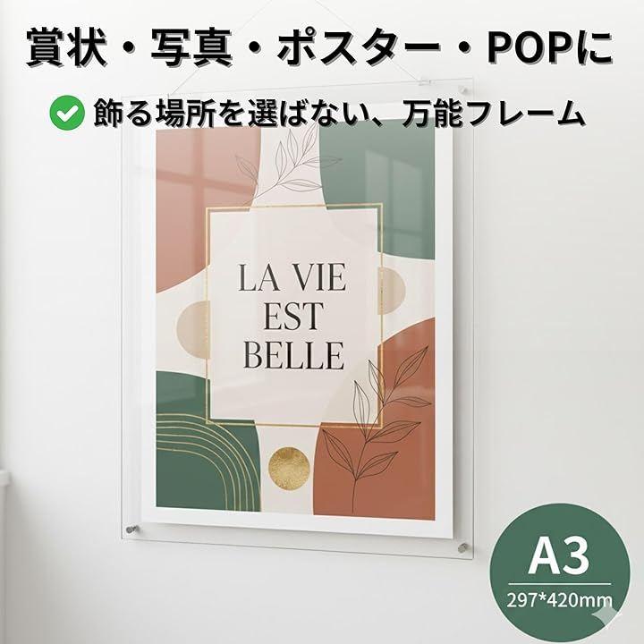 (適用サイズ) A3判 297x420mm に対応する外形 333x455mm のクリアフレームで 写真 賞状 証書 ポスターなど幅広い用紙を美しく展示可能