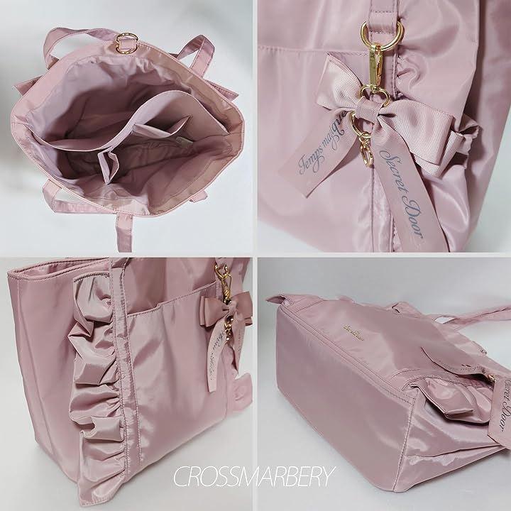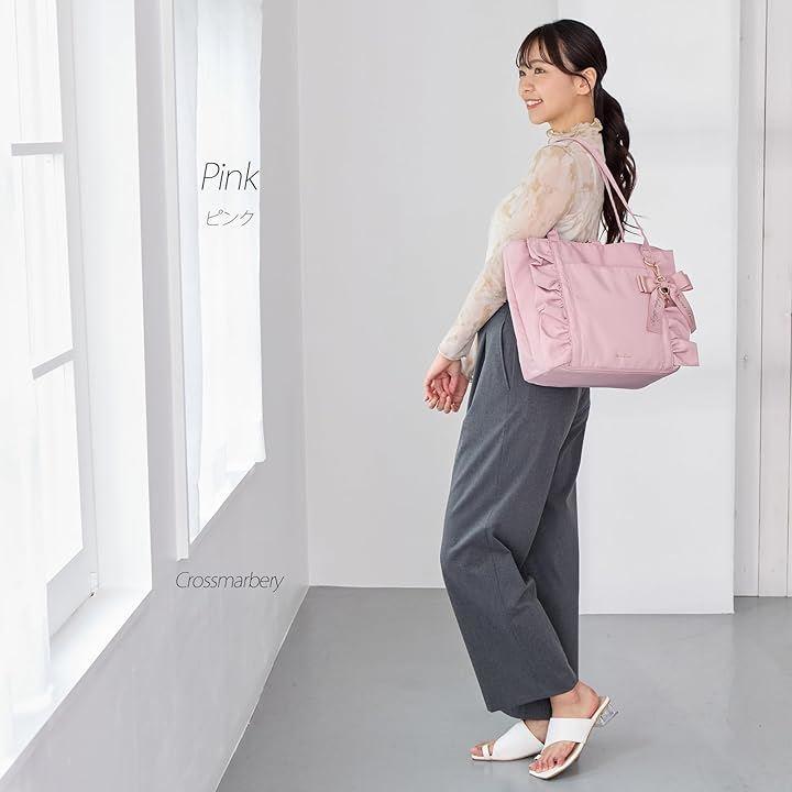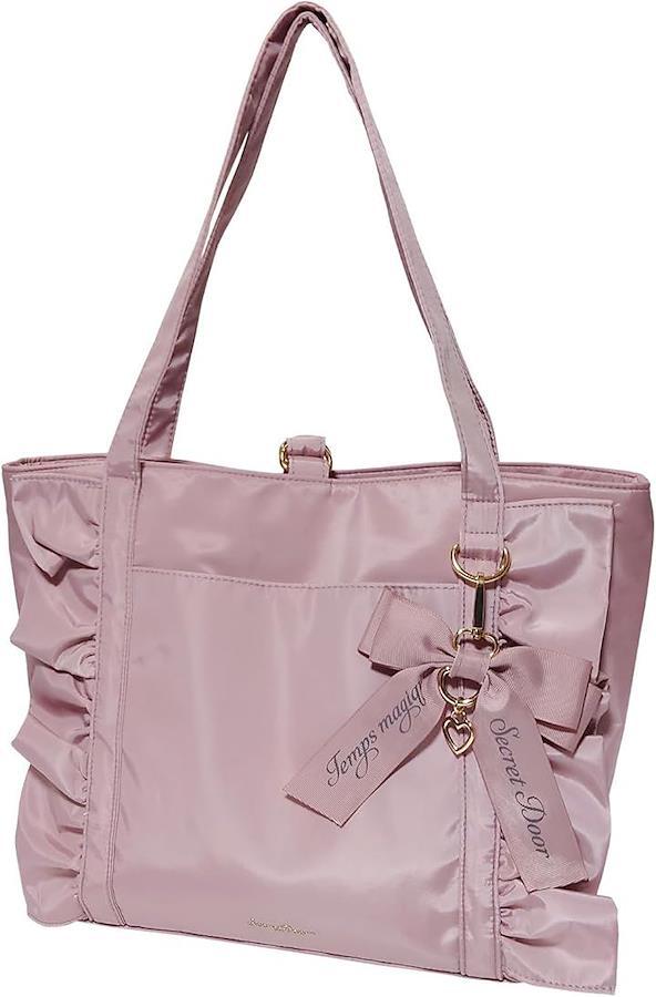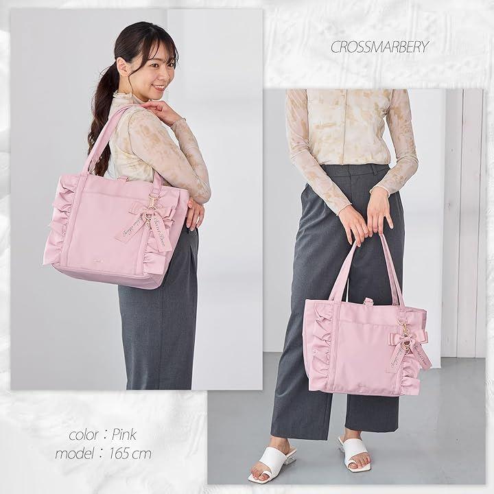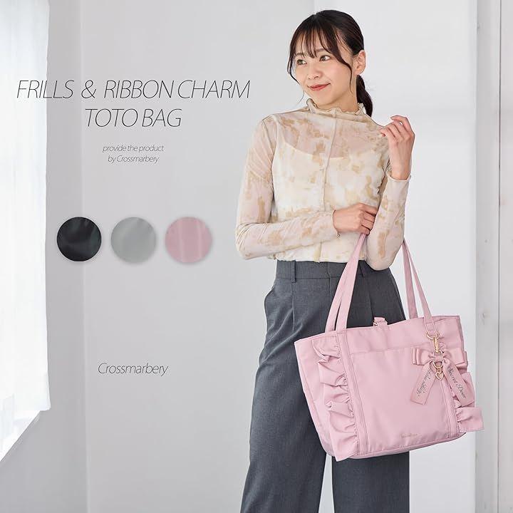 フリルデザインとリボンチャームが可愛いトートバッグ内側には荷物を分けて収納しやすい仕切り付き。