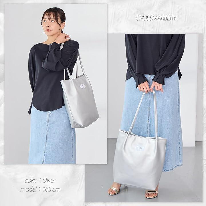マチがしっかりありうちわも収納できるサイズ感なので推し活にも。「素材」合成皮革「仕様」開閉:マグネットボタン内側:オープンポケットx1、ファスナーポケットx1「サイズ」横幅:中央41cm 下 28cm 高さ:36cm マチ:11.5cm持ち手高さ:32.5cm「重さ」約390g* 照明、モニター環境等により色目が若干異なる場合がございます。