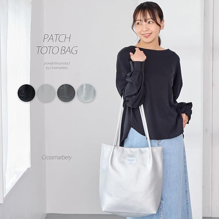 ワッペンがワンポイントになったシンプルでおしゃれなトートバッグ素材は柔らかい質感のフェイクレザー。