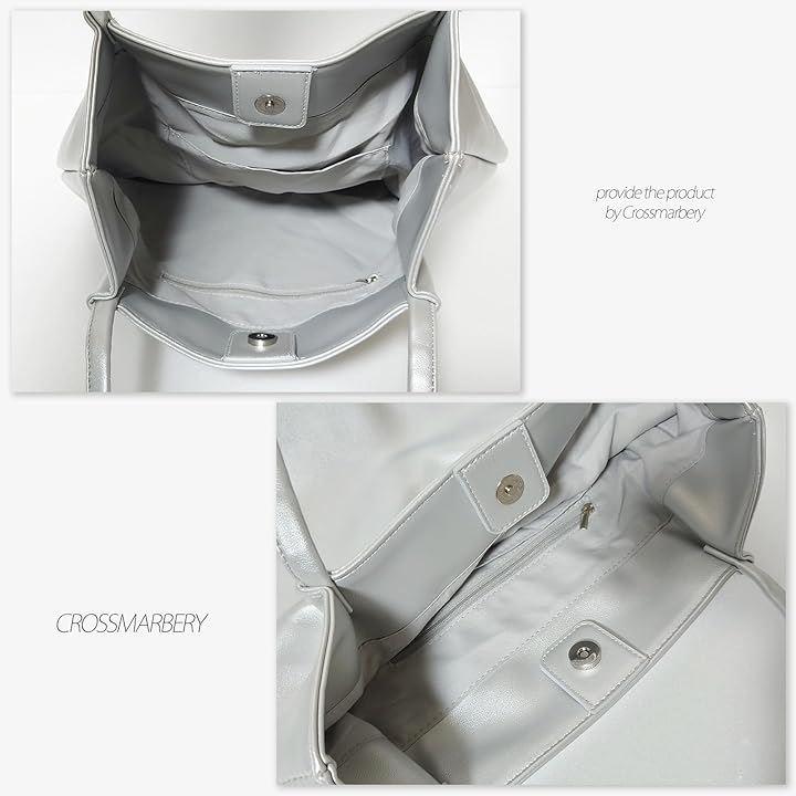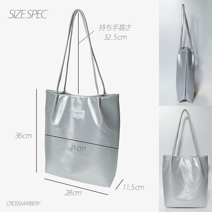 マチがしっかりありうちわも収納できるサイズ感なので推し活にも。「素材」合成皮革「仕様」開閉:マグネットボタン内側:オープンポケットx1、ファスナーポケットx1「サイズ」横幅:中央41cm 下 28cm 高さ:36cm マチ:11.5cm持ち手高さ:32.5cm「重さ」約390g* 照明、モニター環境等により色目が若干異なる場合がございます。