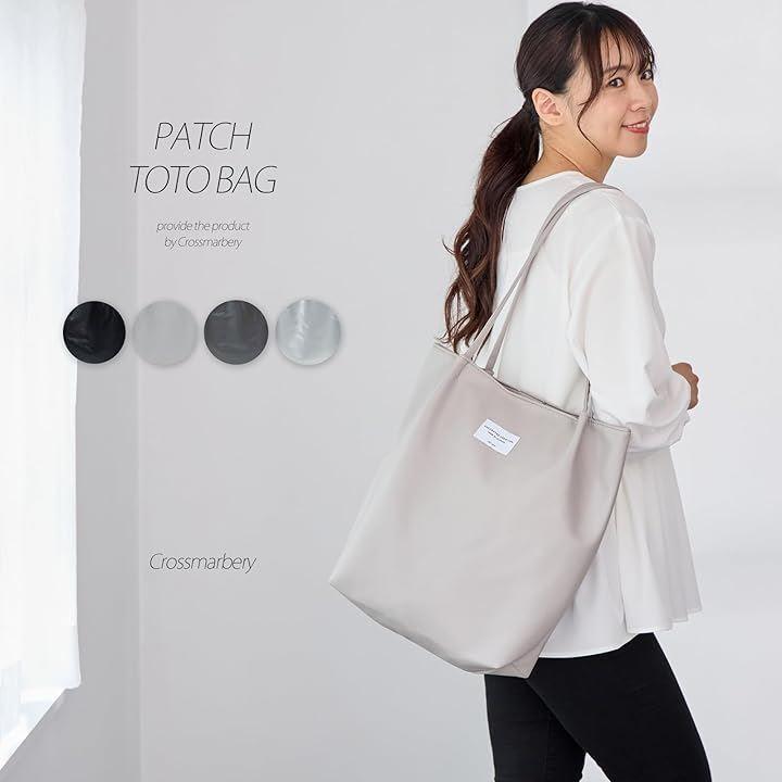 ワッペンがワンポイントになったシンプルでおしゃれなトートバッグ素材は柔らかい質感のフェイクレザー。