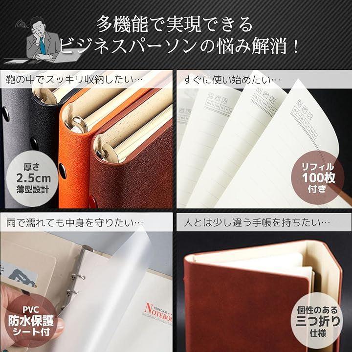 「PVC防水保護シート付」万が一、大雨などで濡れてしまったときでも中のリフィルまでは浸透しないようトップ1枚目に防水保護シートが入っています。