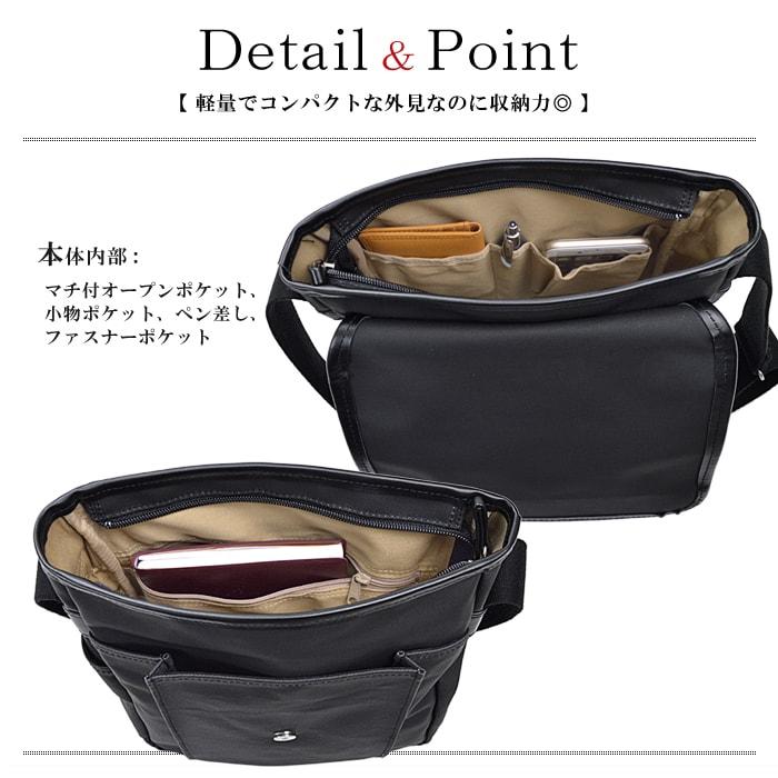 本体内部マチ付きオープンポケット、小物ポケット、ペン差し、ファスナーポケット
