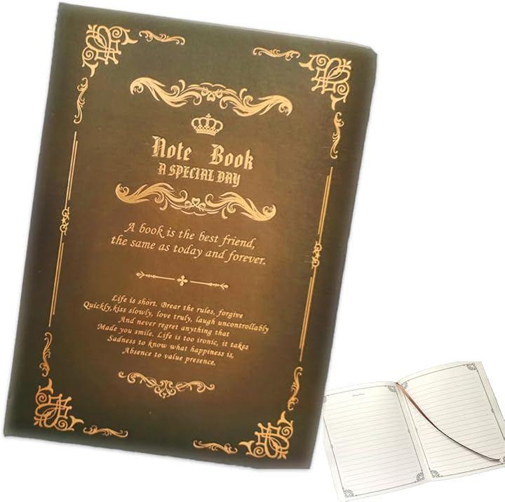 「幻想的な世界を閉じ込めた一冊」まるで魔法の書物のようなレトロで神秘的なデザインが特徴のアンティーク風ノートA5サイズです。