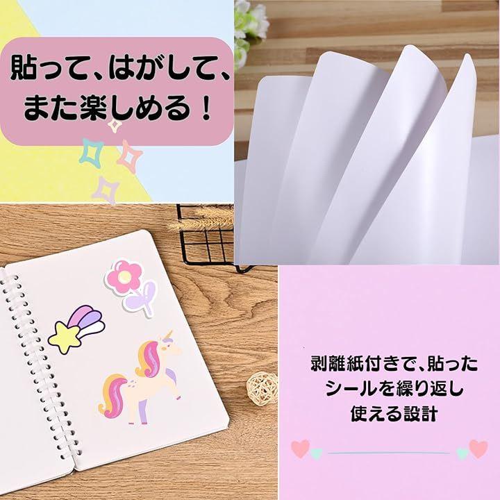 「貼って剥がせる台紙」剥離紙付きで、貼ったシールを繰り返し使える設計。
