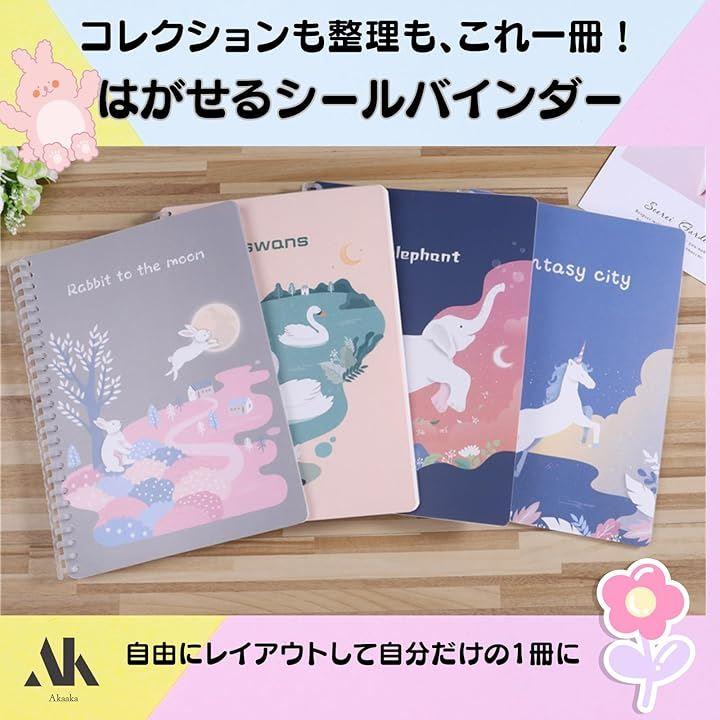 ユニコーン、ゾウ、白鳥、ウサギのかわいい動物柄がそろったシール帳です。