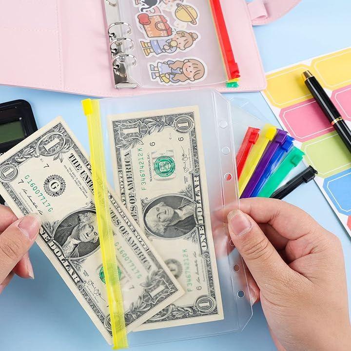 *「ジッパー付きクリアポケット」フィスナーポケットはジッパーが付いて、名刺、付箋、シール、チケット、小銭、ステッカー、付せん、クリップ、スタンプカードなどの小物を収納するのに便利です。
