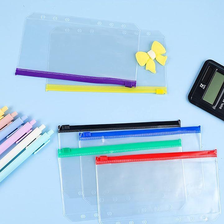*「一目瞭然クリアバインダーポケット」:色:レッド、イエロー、パープル、ブルー、ブラック、グリーン(各2枚)ファスナーが6色の豊富なカラー展開することで、用途や内容物に合わせて色別にして小物の収納や整理がしやすくなります。