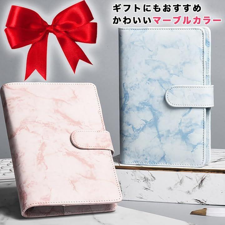 「商品内容」製品サイズ:19x13cm 適用:A6 仕様:ルーズリーフ ジッパー付きクリアケース:12枚 予算管理シート:12枚 英字ステッカー:2枚 カラーラベルシール:1枚 素材;PUレザー カラー:ピンク