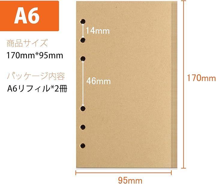 1、「お得な160枚セット」:サイズ:A6(17x9.5cm)6穴; 仕様:無地; パッケージ内容: A6リフィルx2冊 枚数:2冊x80枚 合わせて160枚320ページ; 経済的で大容量な160枚入り、使用頻度の高いミニ6穴システム手帳に最適
