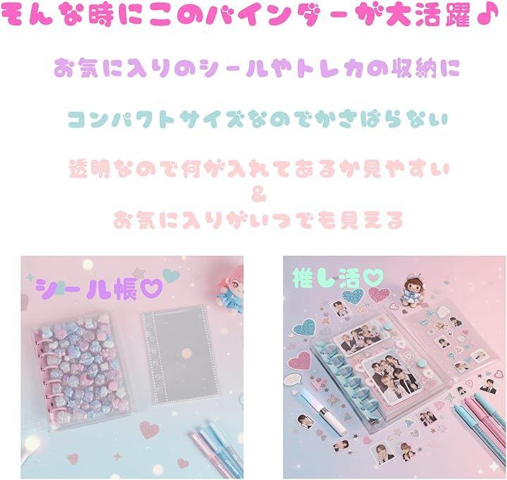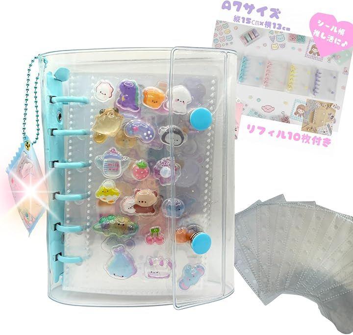 SNSで話題沸騰中。推し活がもっと楽しくなるA7サイズミニバインダー あなたの毎日をもっとキラキラに彩る、A7サイズのクリアミニバインダーが登場しました。シール集めや推しの写真整理、毎日の思い出を綴る手帳として、10代~20代の可愛いもの好きさんは必見のアイテムです。 このバインダーが選ばれる5つの理由 「A7サイズで持ち運び楽々。」 手のひらサイズで、いつでもどこでもあなたの「好き」を連れて歩けます。