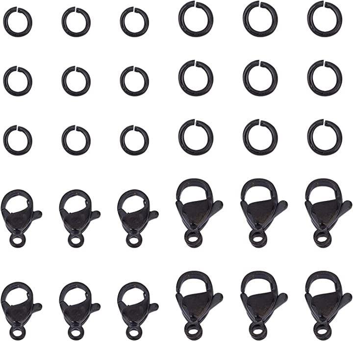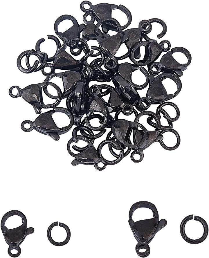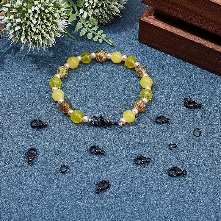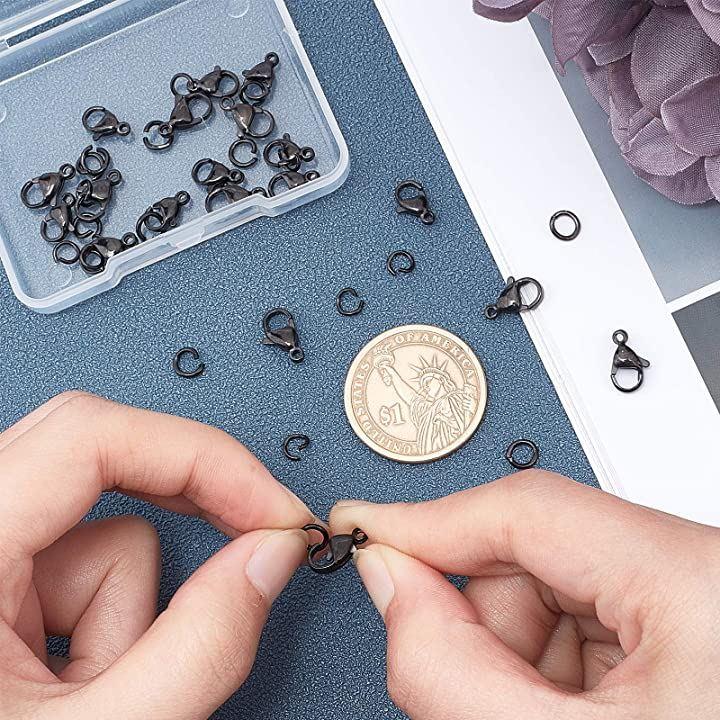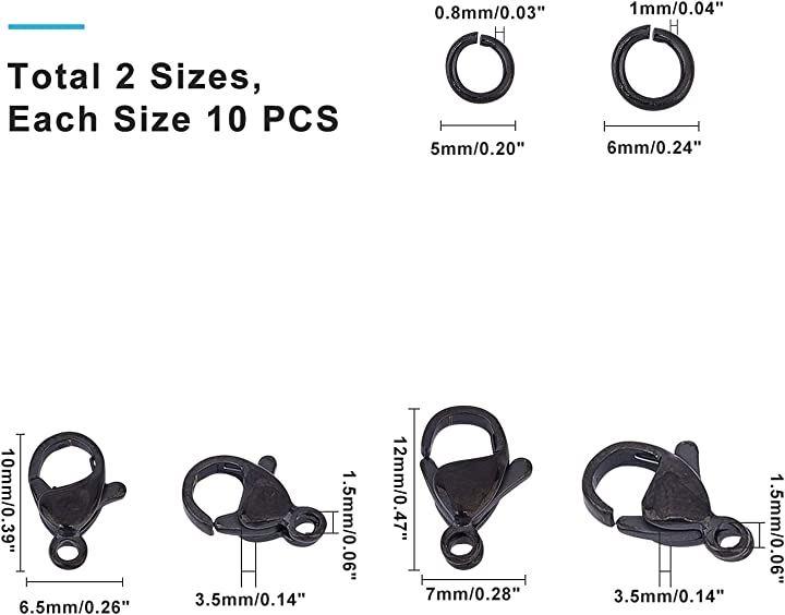 ・ジャンプリング付きネックレスクラスプ:2サイズのロブスタークロークラスプが含まれています、10/12mm、サイズ約18/20ゲージのジャンプリング、5x0.8mm / 6x1mm、合計40個、ボックス内、黒色、彼らは創造的な趣味のすべての範囲に最適です。