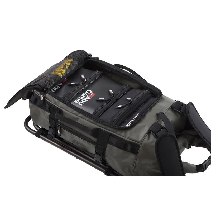 素材:バッグ部分:ターポリン、椅子部分スチール サイズ本体収納部(約):W.44cmxH.26cmxD.29cm 梱包サイズ(約):W.44cmH55cm.D25cm 重量:約2.25Kg 耐荷重:約100Kg ※掲載している商品の画像は代表画像を表示しています。また実物と色が違って見える場合があります。あらかじめご了承下さい。 取り外し式の折り畳みチェア付属で釣りのベース基地として使用できる移動も楽なダッフル型のバックパック荷物が多くアプローチの長い堤防や、管理釣り場等で活躍します。本体から椅子は取り外し可能、また、本体記事は水濡れにも強い防水素材のターポリンを使用しているため、急な雨等にも対応できます。別売りのAbu EVAタックルボックス2 MサイズとリールケースMサイズがジャストサイズで収納可能です。本体側面にはセミハードタイプのロッドケースも取り付け可能です。
