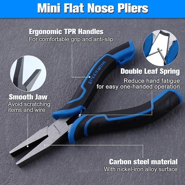 「用途」この平やっとこは、小さなものを楽につかんで離すことができ、歯のない滑らかな爪は、ジュエリーや小さな部品を傷つけません。