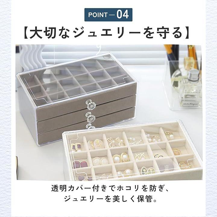 「大切なジュエリーを守る」透明カバー付きでホコリを防ぎ、ジュエリーを美しく保管。
