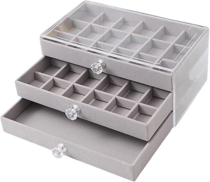 Accessory case with drawers, large capacity, 3-tier jewelry storage