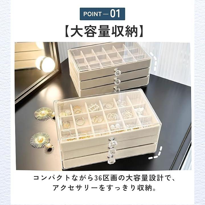 「大容量収納」コンパクトながら36区画の大容量設計で、アクセサリーをすっきり収納。