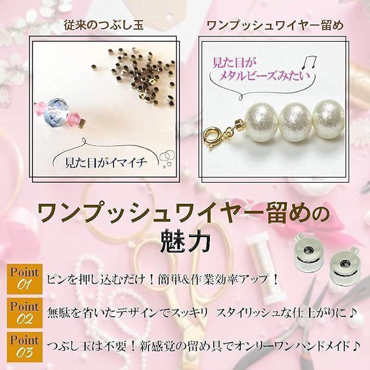 「日本製ワンプッシュ ワイヤー留め金具」 アクセサリーやハンドメイド作品の仕上げに最適な国産エンドパーツです。