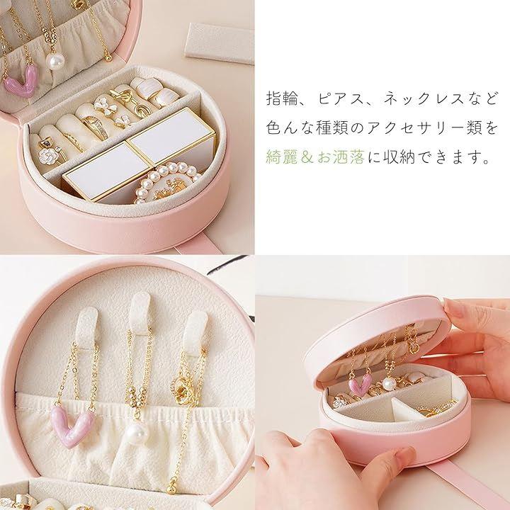 内側にはリングホルダーや小物用の仕切りがあり、旅行や外出時にもアクセサリーを安全に保管できます。